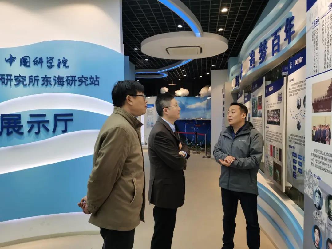2021年1月21日,上海市嘉定区科学技术委员会主任谢东升、副主任金世珍,嘉定工业区管委会副主任陈惠芬等一行5人莅临东海研究站调研指导。东海研究站站长许伟杰、党委书记张伟才、副站长刘晓隽及有关科室人员出席调研会。