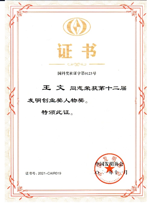 “发明创业奖”于2005年由国家科技部批准,由中国发明协会设立,是首个为发明家设立的国家最高奖项。该奖项贯彻落实尊重劳动、尊重知识、尊重人才、尊重创造的方针,表彰既做出技术发明,又在创业、产业化中取得显著经济效益或社会效益的发明者,宣传他们的创新创业事迹,以调动群众发明创业的积极性,增强全社会的创造活力,促进发明成果的转化实施,为大力推动自主科技创新奠定雄厚的社会基础,为建设创新型国家做出贡献。