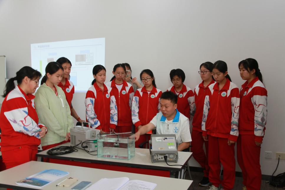 科普志愿者首先开讲《走进声学》科普课,帮助大家系统了解声学基础知识、应用领域及实验环境。随后,同学们实地参观了水声学与空气声学实验室,体验了《探索声音衰减规律》、《声音驻波“现身”》、《隔音材料探秘》、《声呐测深》、《换能器制作》等特色实践课程。课后,学生们分组制作PPT进行分享,通过模拟课程答辩和讲师提问指导的方式,对所学课程进行深入巩固。