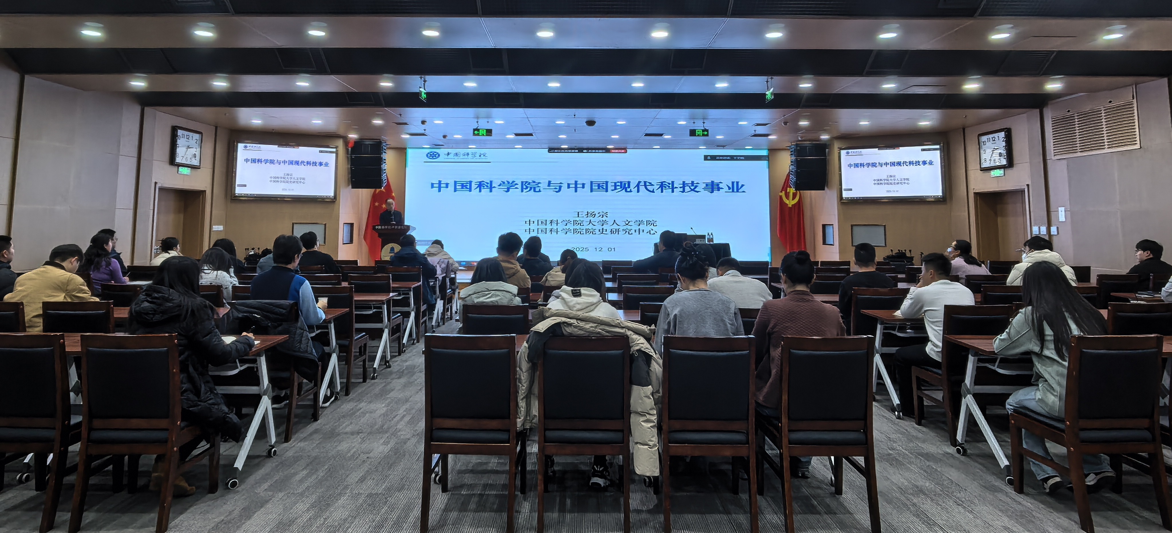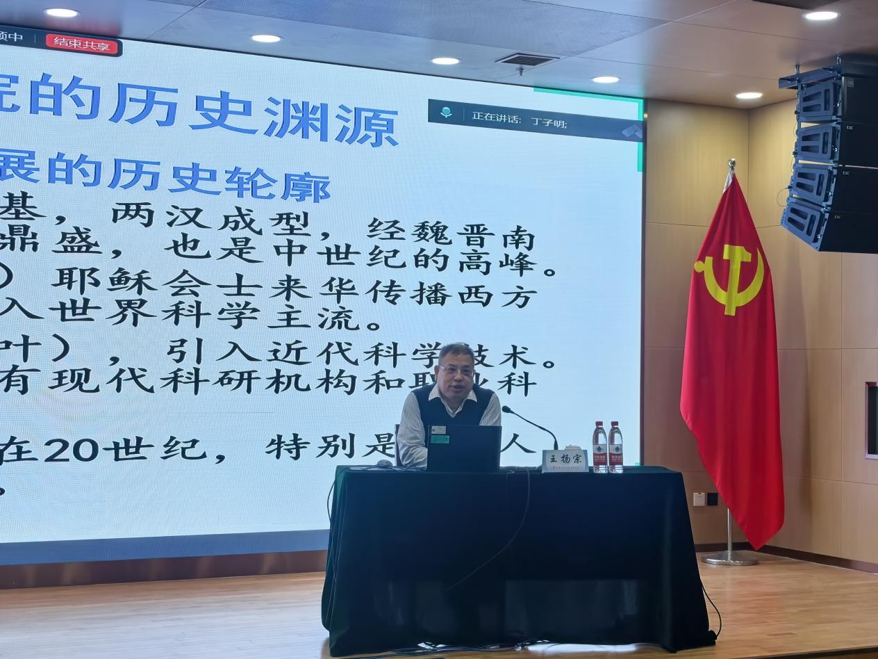 王扬宗教授以中国科学院在不同历史时期的重要作用为主线,深入讲解了中国科学院院史及中国科技发展历程,中国科学院自1949年建院以来,作为我国科技事业的重要奠基者、科技体制改革的探索者、创新体系建设的先行者和新时代科技强国建设的引领者,为科技进步、经济社会发展和国家安全做出了不可替代的重要贡献。报告内容全面详实,讲解深刻细致,帮助与会者从历史和全局的角度理解自身工作对科技事业发展的意义和价值。