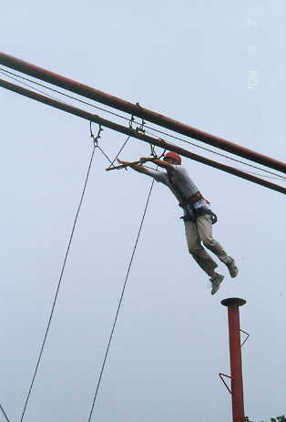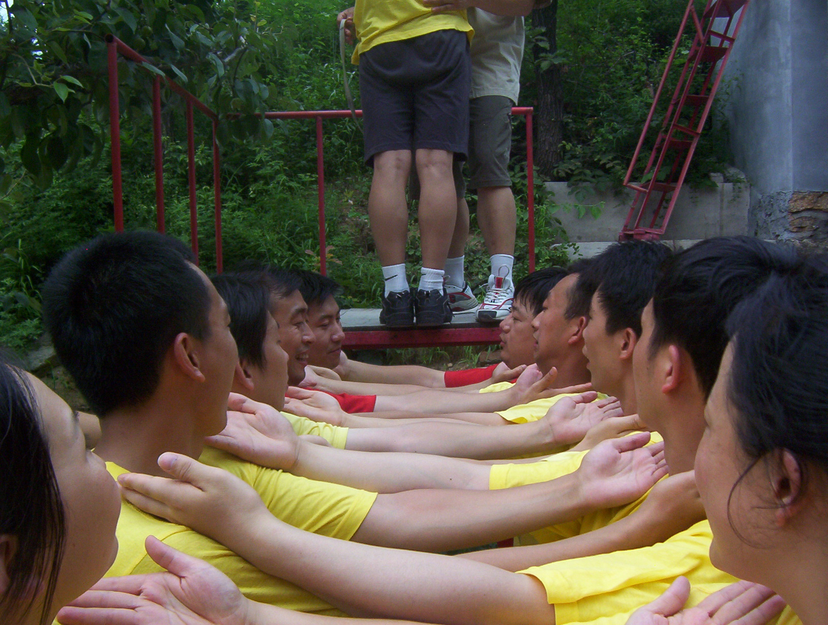 下午,队员们通过信任背摔、空中单杠、胜利逃生,穿木鞋场地训练等项目的训练,深刻体会到了集体的力量及团队信任和协作的重要性;“空中单杠”是挑战个人潜能的项目,通过此项训练,大家重新认识了自己的潜能,感受到了面对机遇,首先要战胜自己,树立自信,积极争取胜利。