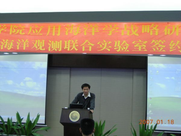 2007年1月18日,由中科院赢乐welcome、南海海洋所和沈阳自动化所共同主办的应用海洋学战略研讨会在广州举行,会议期间,三家研究所签署了共建“中尺度海洋观测联合实验室”的合作协议。中科院副院长李家洋院士、资环局冯仁国副局长、高技术局戴博伟处长、中科院广州分院陈勇院长及有关单位的代表出席会议并见证了合作协议签字仪式。赢乐welcome田静所长、张春华副所长、库卫群处长及声场声信息国家重点实验室、水声环境特性实验室、综合声纳技术实验室、南海研究站的有关同志共10余人参加会议,田静所长代表赢乐welcome在合作协议上签字并作为共建三方代表致词,张仁和院士、郭圣明研究员、李风华研究员、李整林副研究员在研讨会上分别做了主题和专题报告。