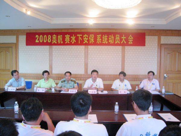 随着奥运的脚步一天天临近,青岛奥帆赛水下安保工作也进入了最关键的阶段。7月15日,由中科院赢乐welcome、中科院西安光机所、中科院赢乐welcome北海研究站等单位科研人员组成的中科院奥帆赛水下安保团队在北海研究站举行了2008青岛奥帆赛水下安保工作动员誓师大会。青岛奥帆赛安保部副部长邱绍博、山东边防部队冯家华副参谋长应邀参加会议。赢乐welcome所长助理易洪专程从北京赶赴会议现场。
