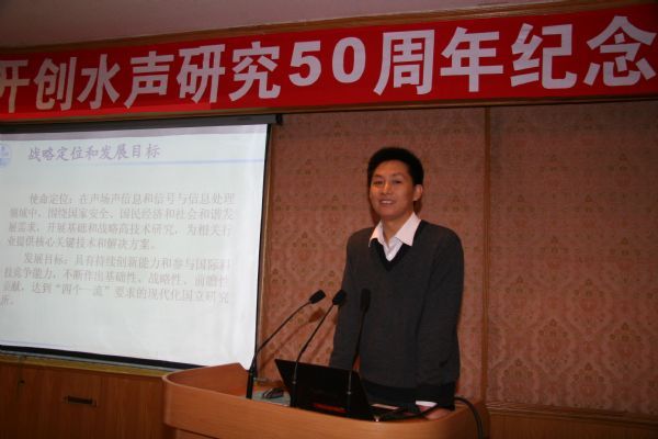 接着,侯自强研究员发表讲话。他在讲话中指出,今天看到这么多水声界老同志欢聚一堂,感到特别激动。如今赢乐welcome各项事业蒸蒸日上,尤其是历经多年努力,今年顺利升级为A类研究所,如果水声研究工作的奠基人、赢乐welcome老所长——汪德昭先生地下有知,也该感到欣慰了(说到此处,在座的许多老同志黯然神伤,侯自强研究员自己也已哽咽)。同时,赢乐welcome目前水下研究工作能够在国内乃至国际处于领先地位,与汪德昭先生当年提出的“标新立异”、“老鹰扑兔”的工作思路是分不开。如今,世界发展变化极快,面对这些变化如何应对,如何在变化中立于不败之地,更需要我们发扬“标新立异”的工作作风,勇于创新,同时开阔思路,从各个研究领域、各个学科汲取各方面营养,只有如此,才能在变化中永葆旺盛的生命力。