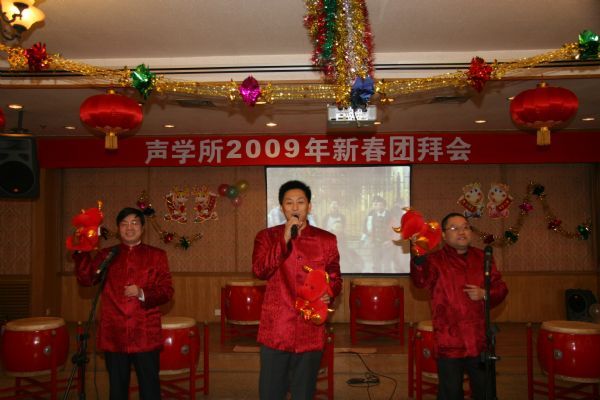 一场鼓声震天、声势浩大的“开场鼓”为团拜会拉开了序幕,强劲的鼓声立即使现场气氛高涨。随后,所领导为大家带来的“歌曲联唱”,歌词幽默生动,歌曲美妙热烈,更是将现场掀起了一个小高潮。随后,大家登台表演了各种精彩节目,既有新入所学生的精彩表演,又有退休职工的精湛舞姿,既有静态的古筝茶艺表演,又有动感十足的恰恰舞表演,既有令人捧腹的小品,又有深情感人的音乐情景剧,精彩的节目让人应接不暇。除了演员们的精彩表现,小嘉宾的歌唱表演更是精彩纷呈,颇具专业水准,引来掌声阵阵。团拜会还穿插了许多融知识性、趣味性于一体的小游戏,其中,有奖竞答游戏通过让参与者回答“所训”“质量目标”等问题,让职工们在欢声笑语的游戏过程中进一步了解和熟悉了我所的组织文化体系。