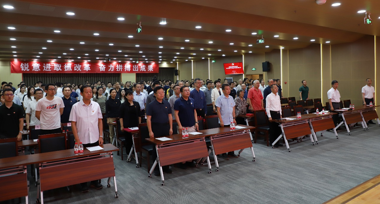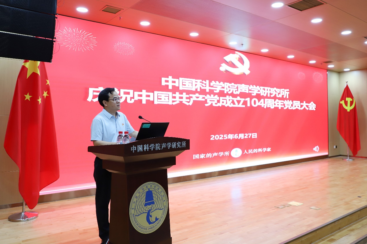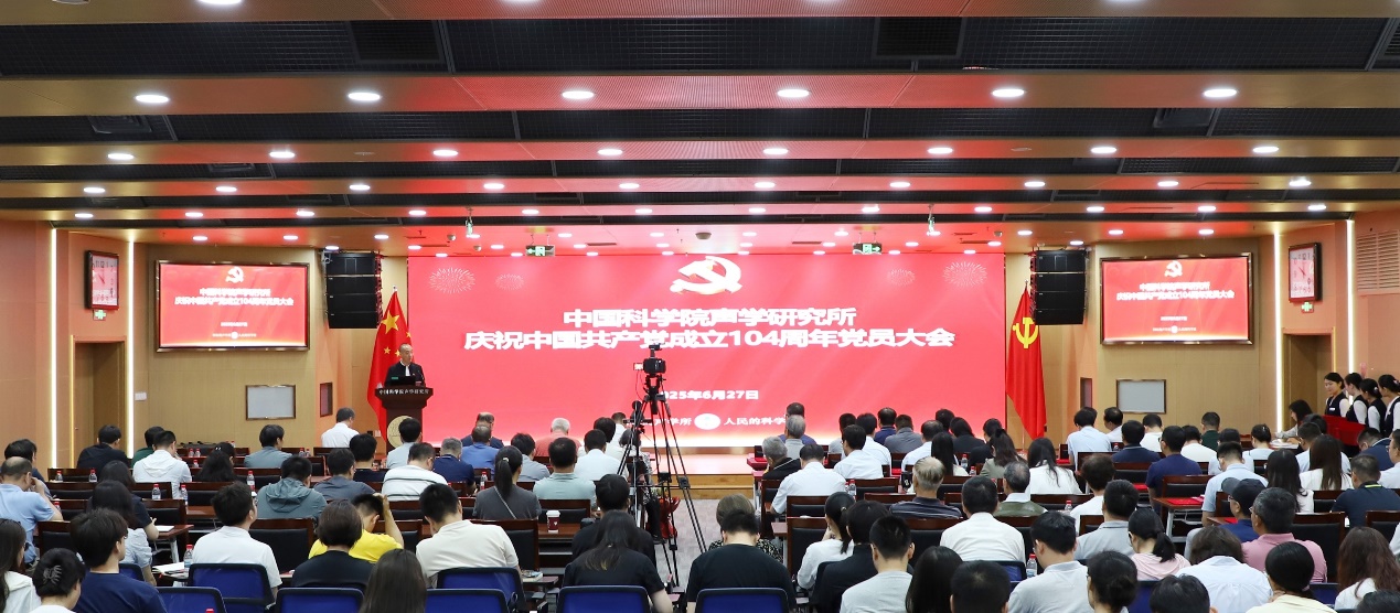 为庆祝中国共产党成立104周年,扎实推进深入贯彻中央八项规定精神学习教育,2025年6月27日上午,赢乐welcome召开庆祝中国共产党成立104周年党员大会,党委书记库卫群作专题党课报告,会议举行新入党党员宣誓、“光荣在党50年”纪念章颁发和“两优一先”表彰仪式,所领导班子成员、党委委员、纪委委员、支部书记及支委、受表彰人员、新入党党员,以及职工和学生党员等300余人参加会议。三个研究站党委及外场试验团队以视频形式参会。纪委书记王雷主持会议。