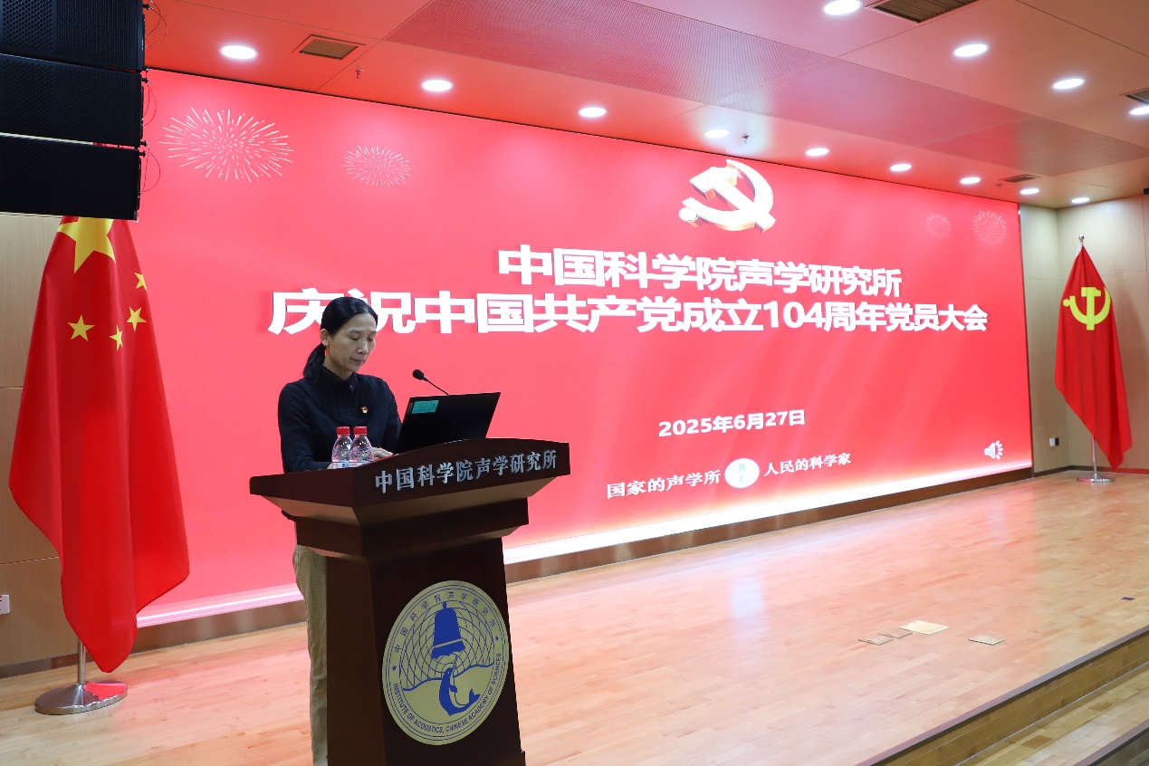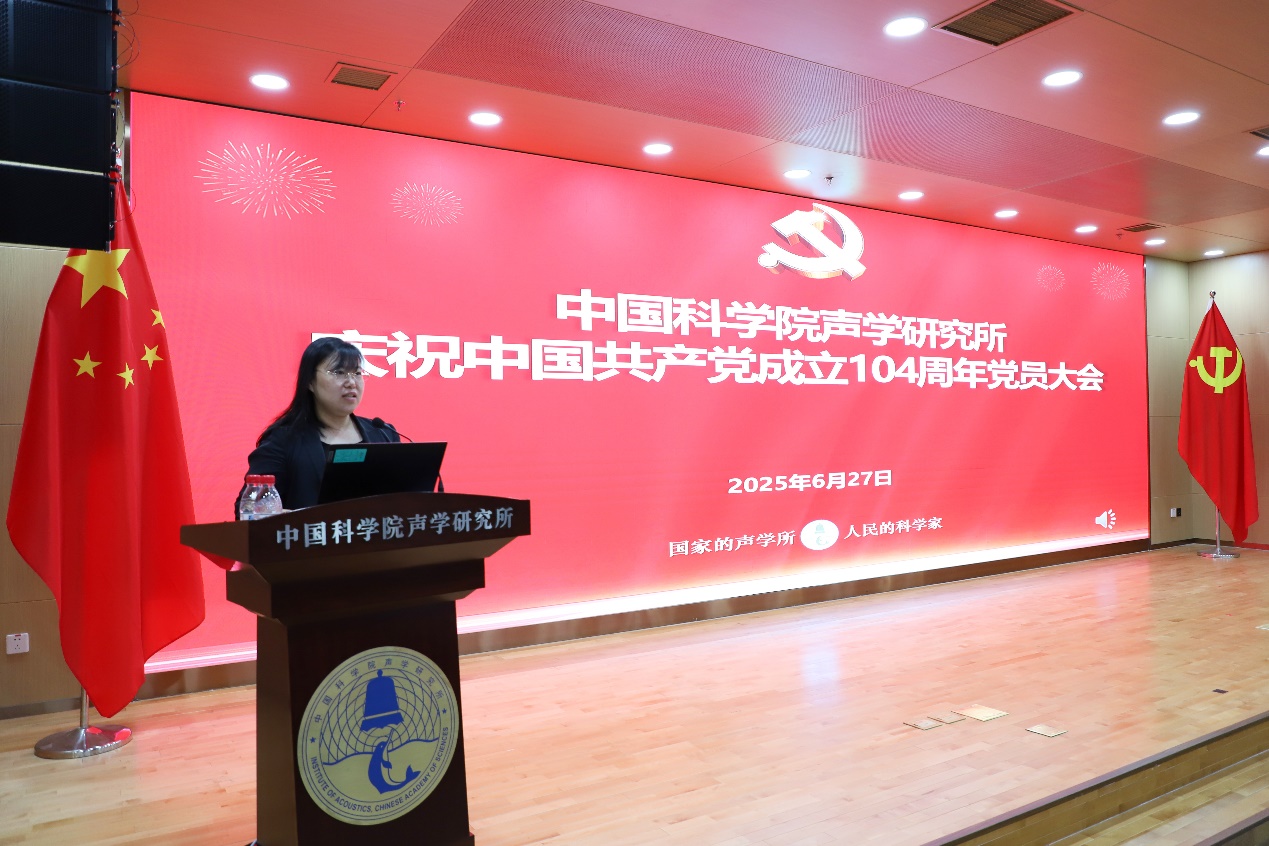 优秀共产党员代表王文发言,他谈到“优秀共产党员”荣誉不仅属于个人,更属于并肩奋斗的团队成员,他感谢党组织的培养,强调要将个人科学追求融入民族伟大复兴事业中,胸怀“国之大者”,服务国家战略需求;要勇担时代使命,勇闯科研“无人区”,解决“卡脖子”难题;要弘扬科学家精神,恪守学术道德底线,未来将继续砥砺前行,为建设科技强国、实现中华民族伟大复兴贡献力量。