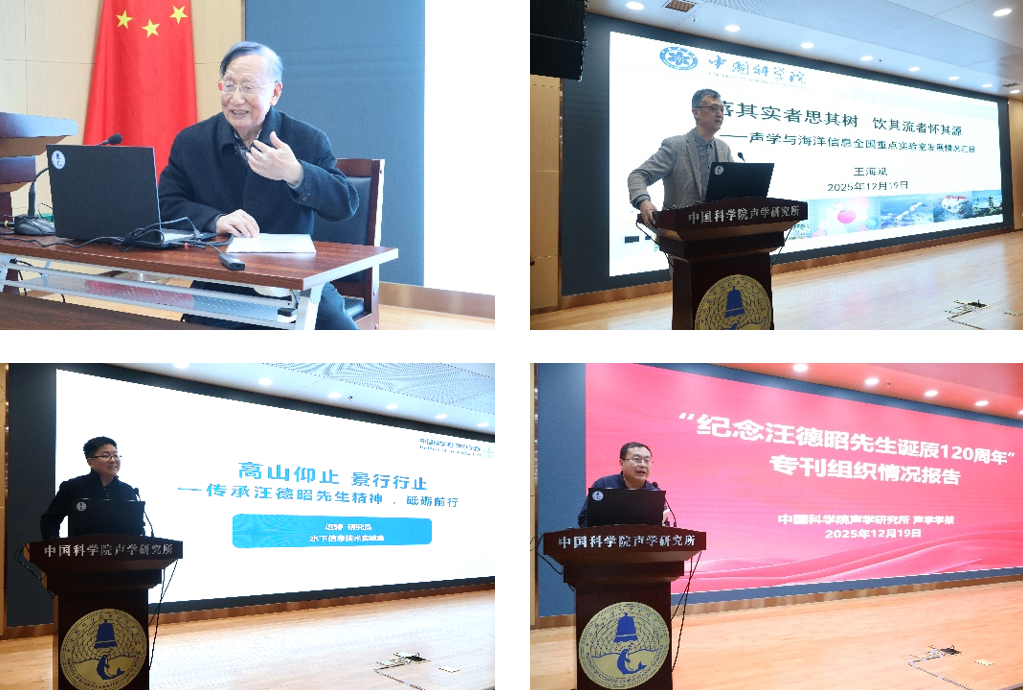 会上,副所长杨军介绍了为纪念汪德昭院士诞辰120周年编印的《声学学报》专刊。专刊刊发多篇纪念文章,发表了水声学领域的最新学术成果,是一份特殊的精神献礼,也体现了对老一辈科学家的学术传承。